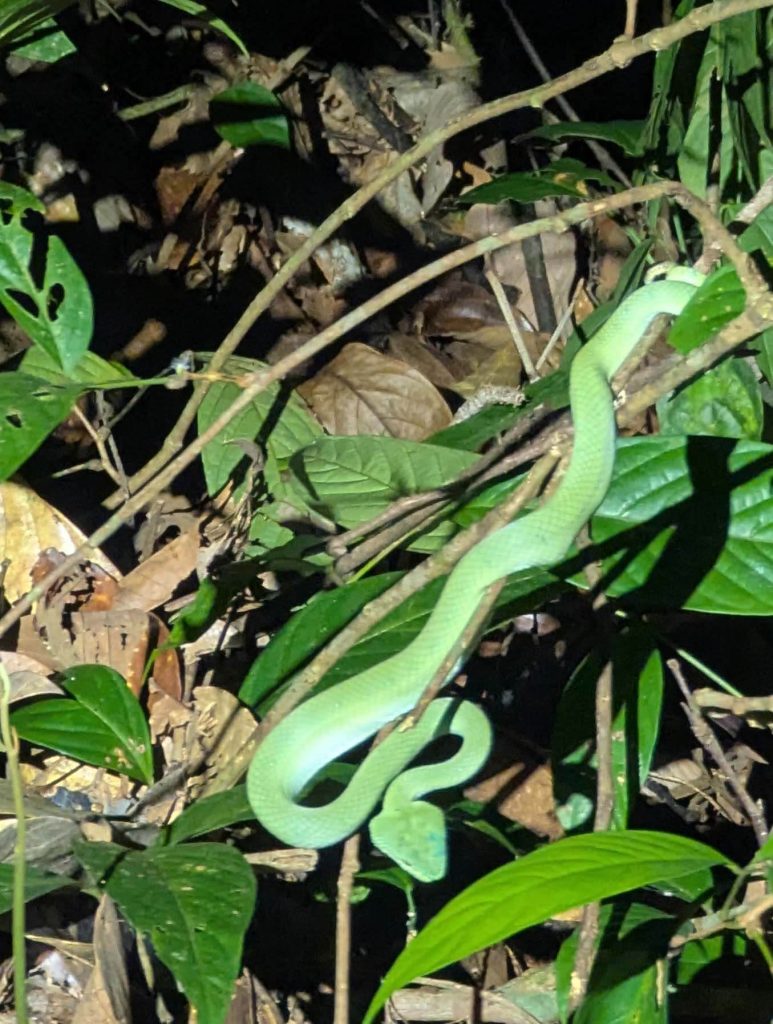 We came back in the evening for a night walk. We walked the canopy walk looking for flying squirrels – and found one. He flew an amazing distance, soaring across the walkways. Then (fortunately) we went down to the trails and searched for other weird night life – snakes, toads, bugs.