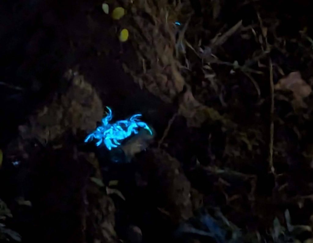 Under a red light, scorpions glow in the dark. Very cool, but I was a little disturbed by how many the guides found.
