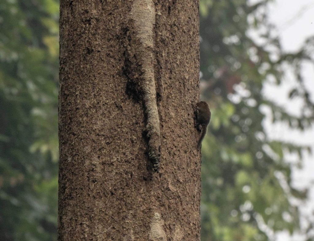 Borneo has the world’s smallest bear (Sun Bear – check), smallest elephant (Borneo elephant – check), and the world’s smallest squirrel. I had caught glimpses of one during our trip, but on the last day here, we finally saw on clearly. It was maybe the size of a wren.