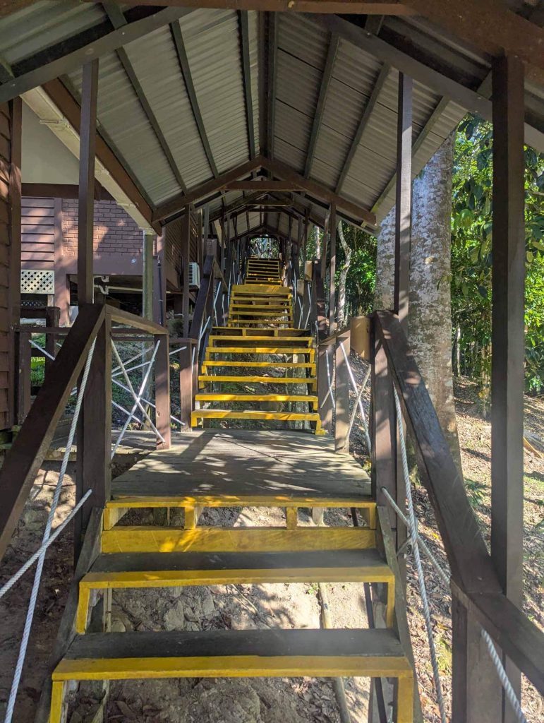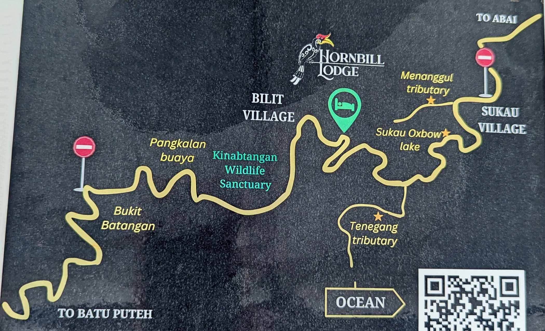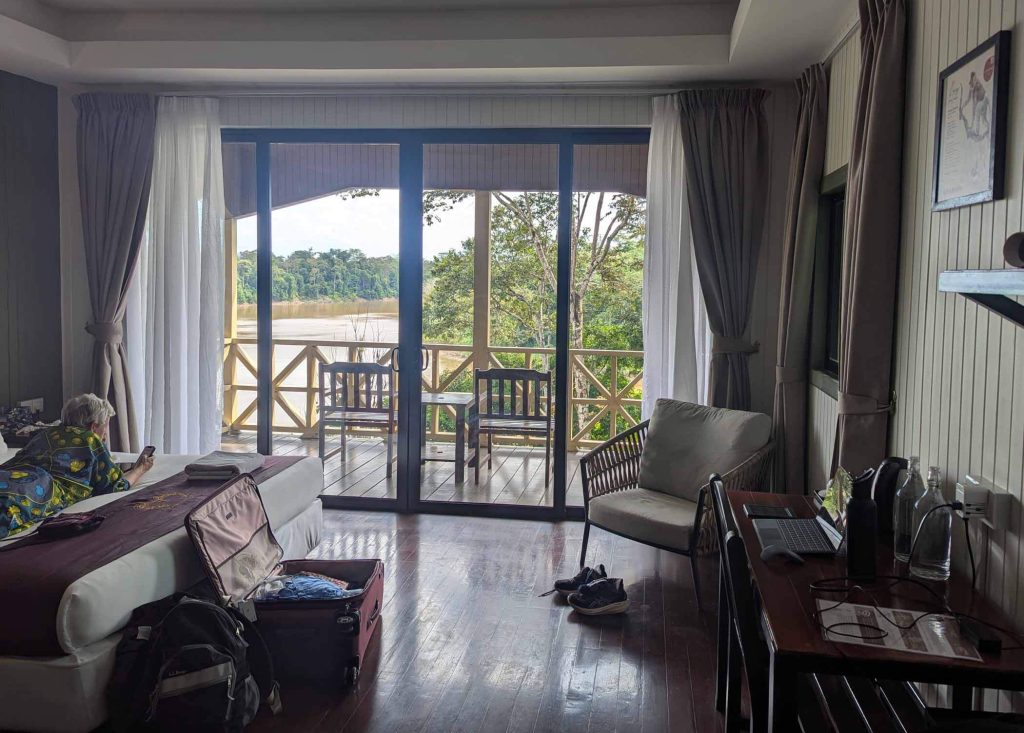After the tour, we drove a few hours back the way Sheila and I had come the day before to Hornbill lodge on the banks of the Kinabatagan River. Our room was spacious (although not as larger as the night before) but at the top of 92 steps.