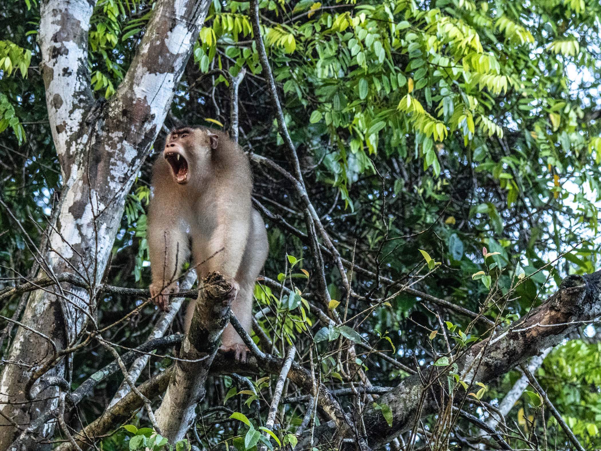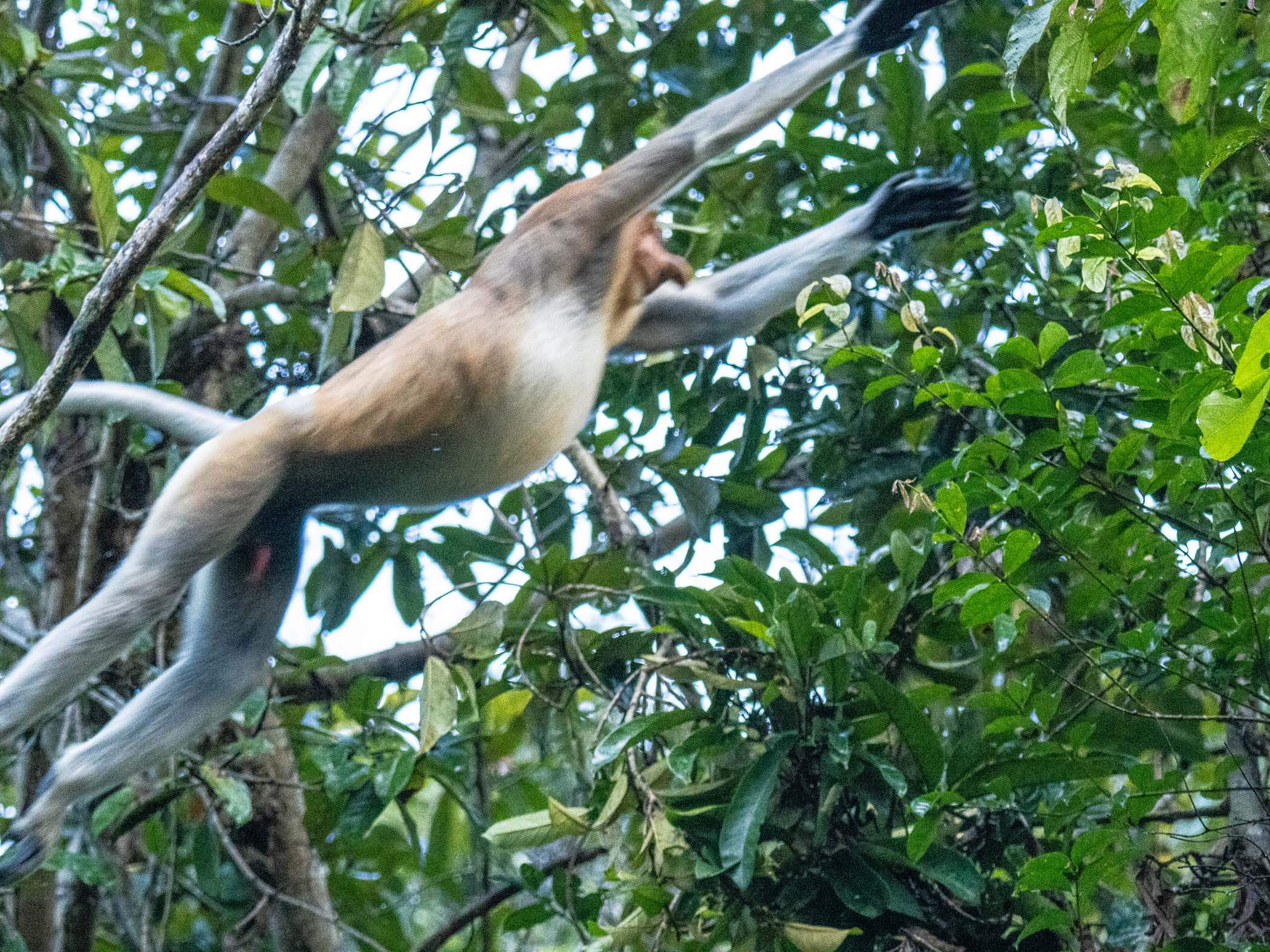 We turned around and went back towards the Kinabatagan river. At that point, there were lots of monkeys at the end of the river, presumably drying out.
