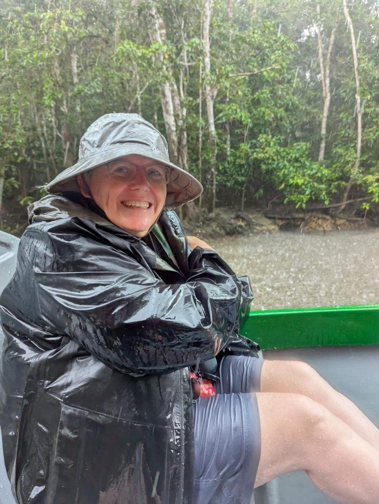 After we dried out and had dinner, we had the option of another night walk or a night cruise. Nick and Sandra went on the walk; Sheila and I (and others) opted to stay at the lodge and rest.