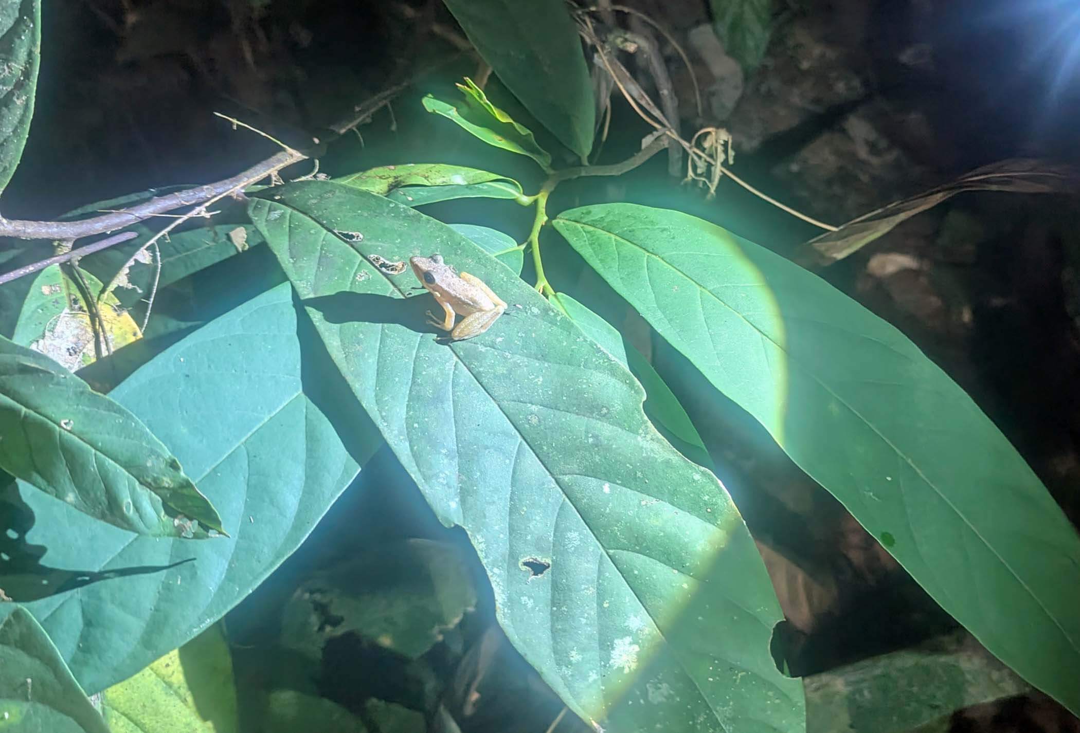 We caught a glimpse of a Slow Loris, but beyond that we mostly saw small frogs and large bugs. (And one sleeping Blue-eared Kingfisher.)